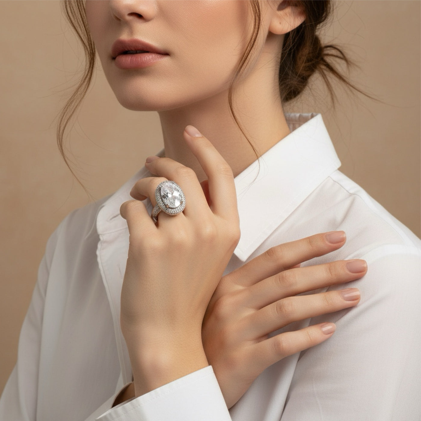 SIZE: Adjustable (Free Size – fits most finger sizes) COLOR: Silver METAL FINISH / COLOR: Rhodium Plated (Silver Tone) STONE COLOR: Clear/White PACKAGING: Delivered in eco-friendly packaging