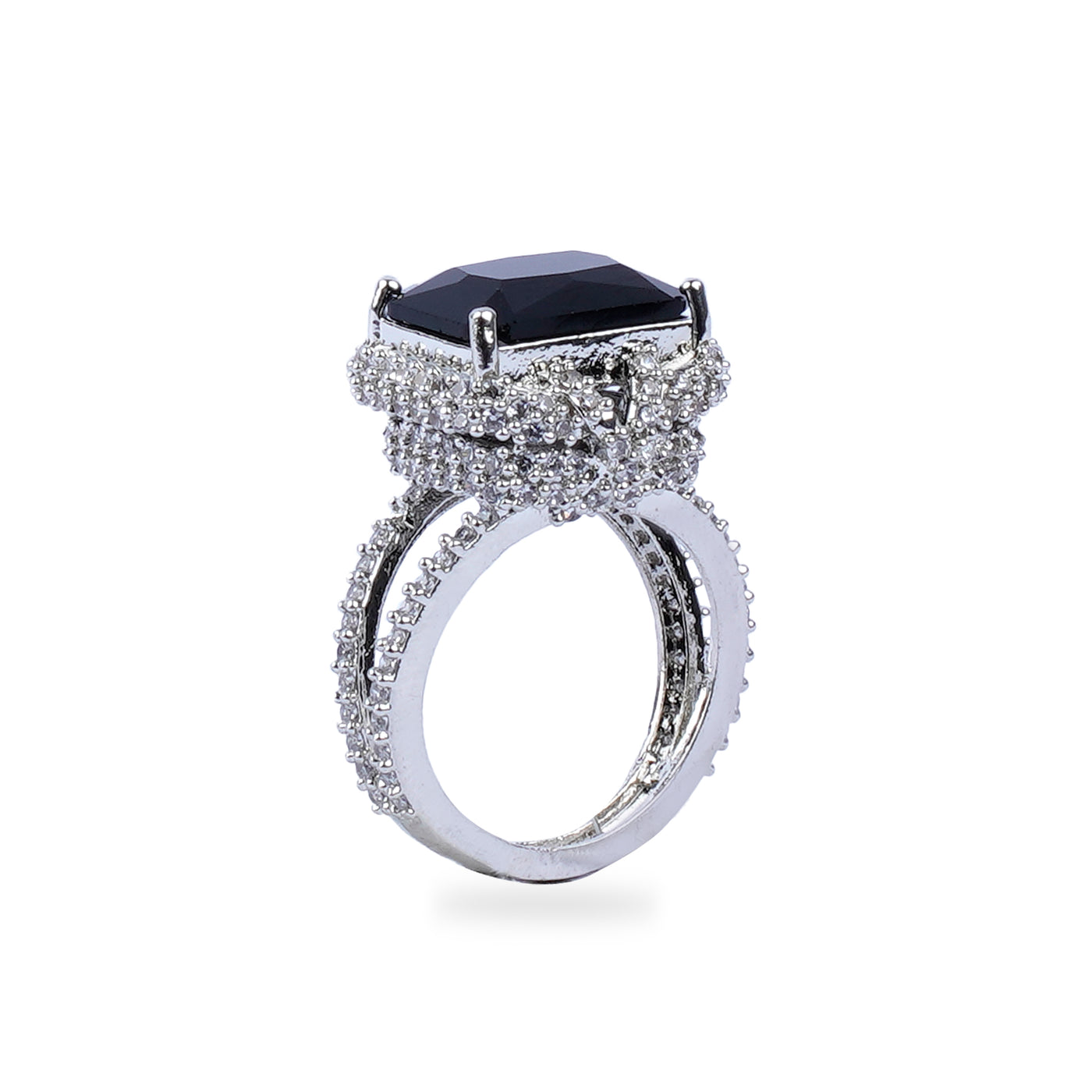 SIZE: Adjustable (Free Size – fits most finger sizes) COLOR: Silver METAL FINISH / COLOR: Rhodium Plated (Silver Tone) STONE COLOR: Black PACKAGING: Delivered in eco-friendly packaging