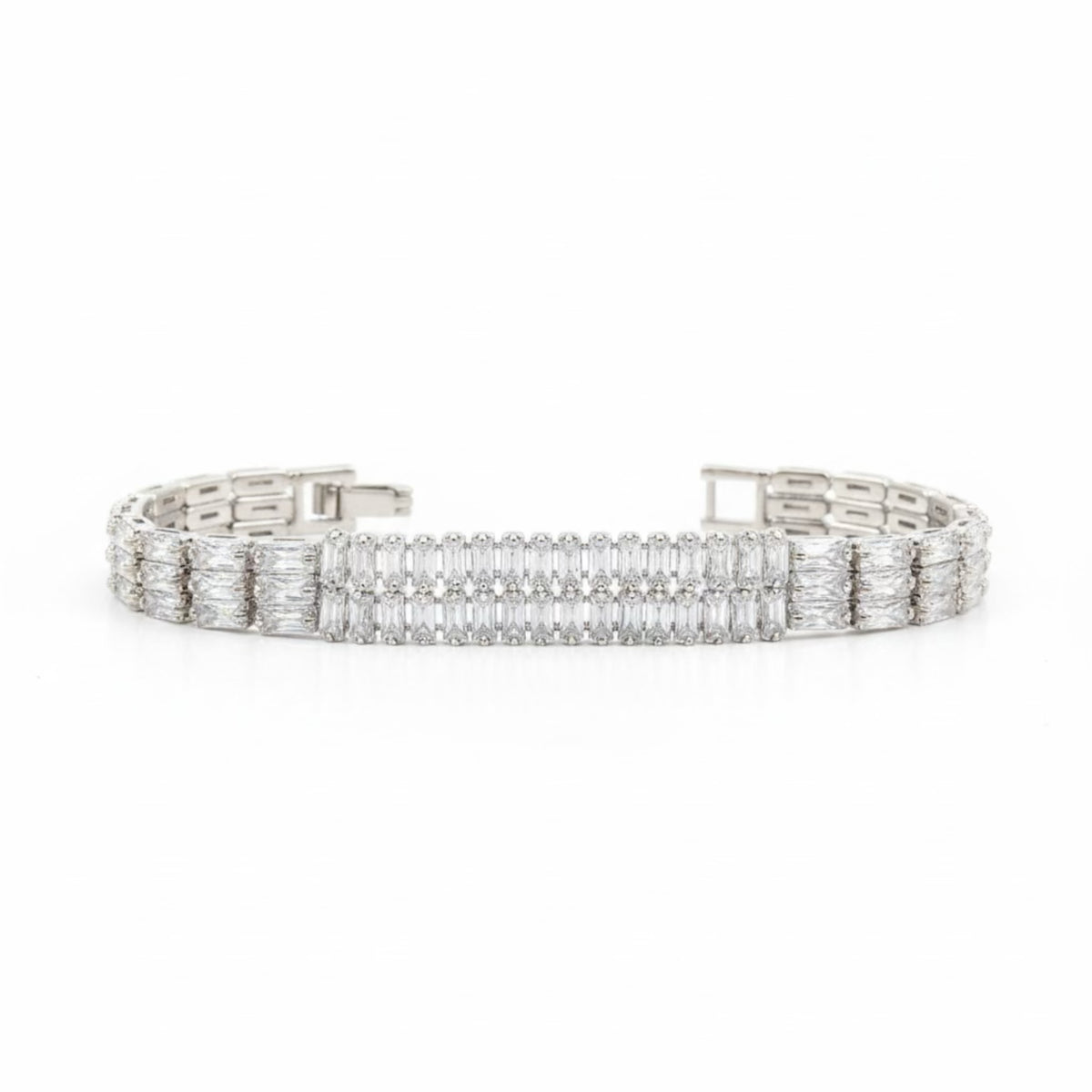 COLOR: Silver METAL FINISH / COLOR: Rhodium Plated (Silver Tone) STONE COLOR: Clear/White PACKAGING: Delivered in eco-friendly packaging