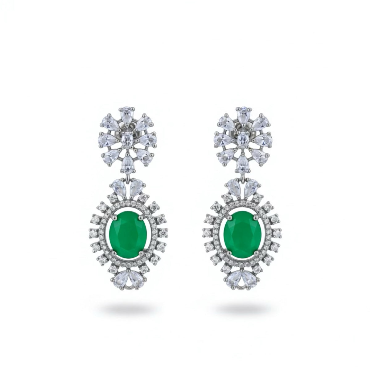 FINISH: High-Polish Rhodium Plated STONES: Brilliant-Cut Diamond-Like Stones with Elegant Accents STONE COLOR: Emerald CRAFT: Precision Crafted Luxury Design WEIGHT: Lightweight & Refined Comfort PACKAGING: Delivered in White Eco-Friendly Packaging
