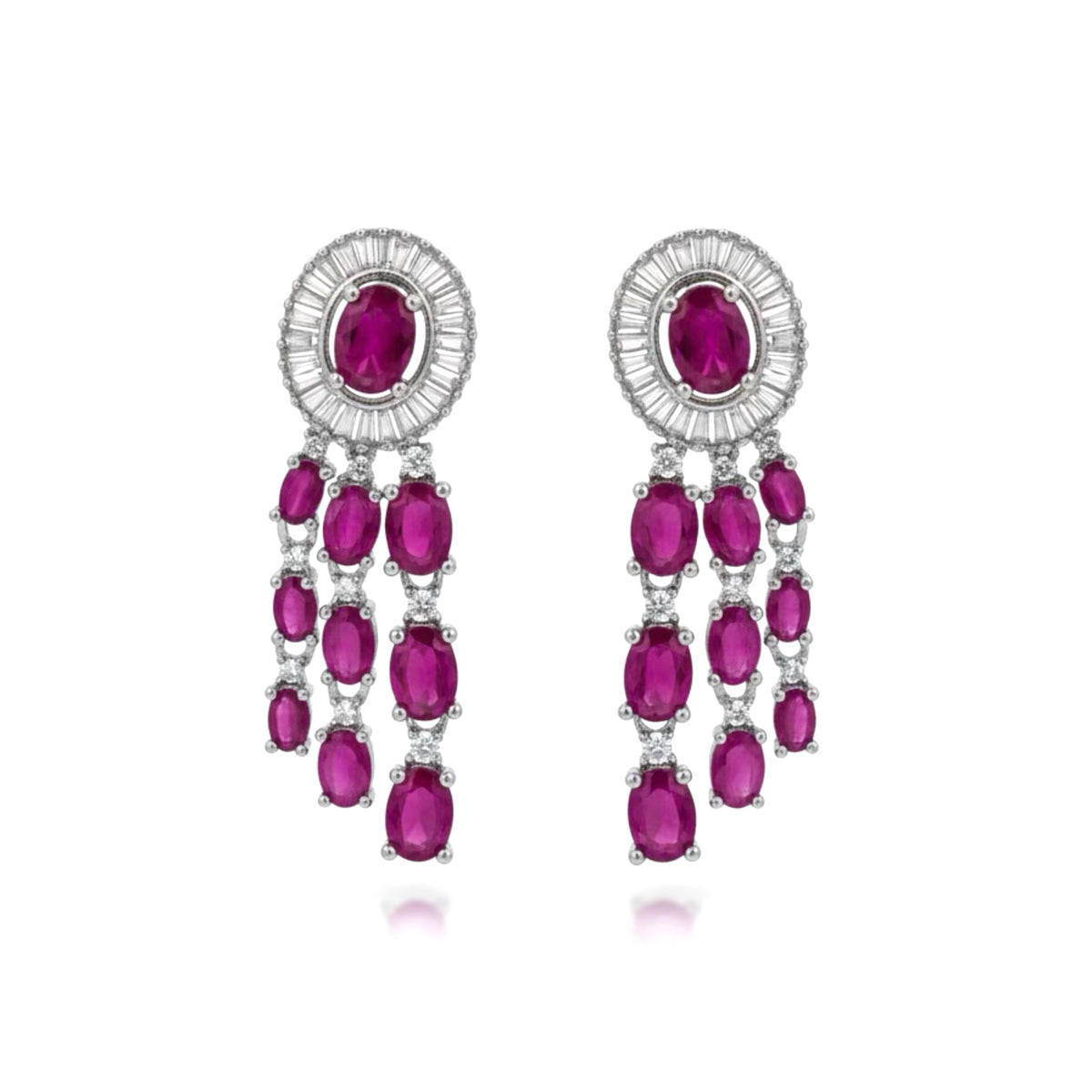 FINISH: High-Polish Rhodium Plated STONES: Brilliant-Cut Diamond-Like Stones with Elegant Accents STONE COLOR: Ruby CRAFT: Precision Crafted Luxury Design WEIGHT: Lightweight & Refined Comfort PACKAGING: Delivered in White Eco-Friendly Packaging