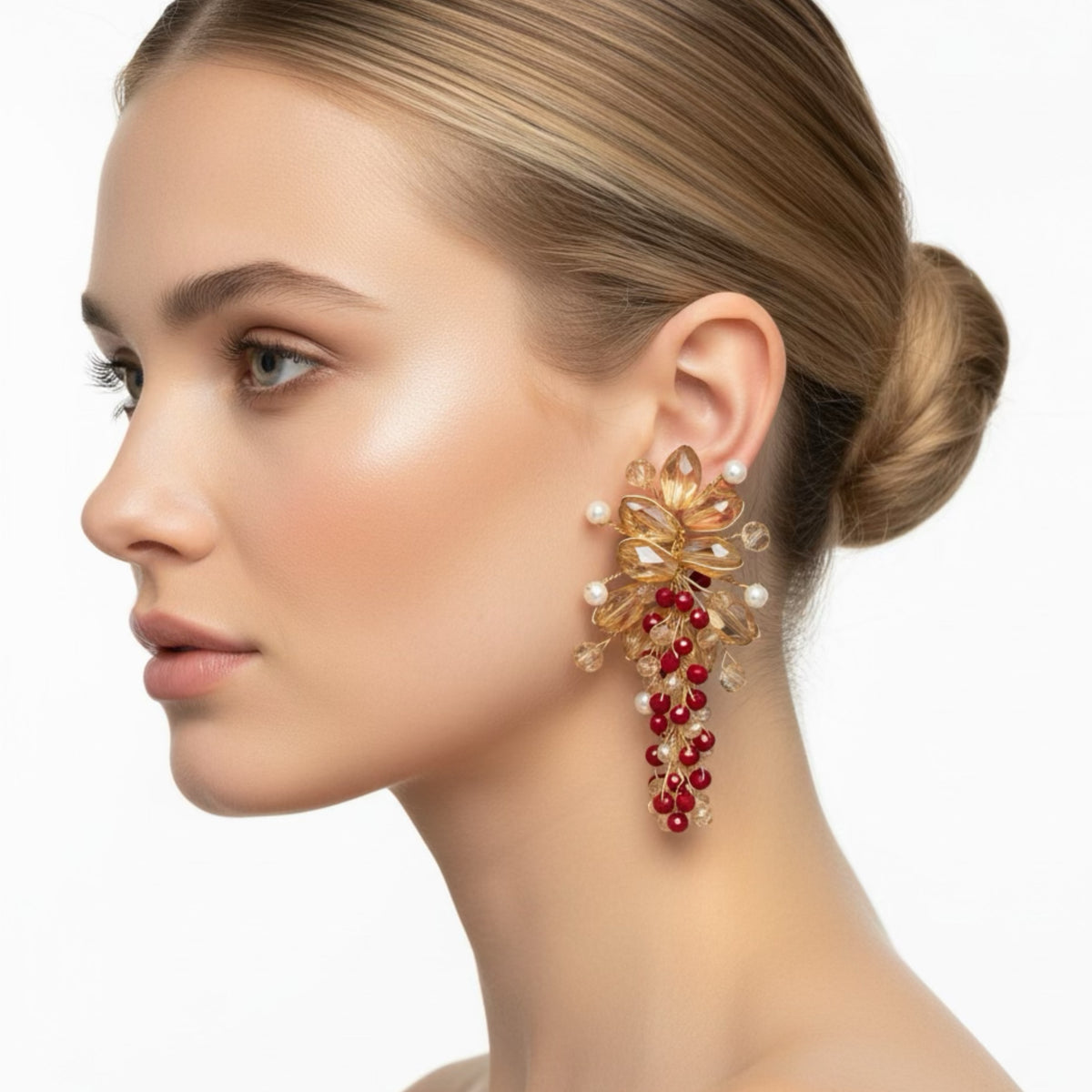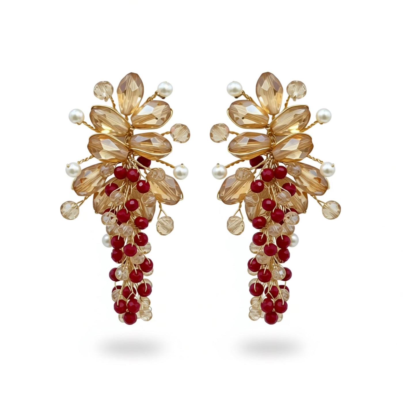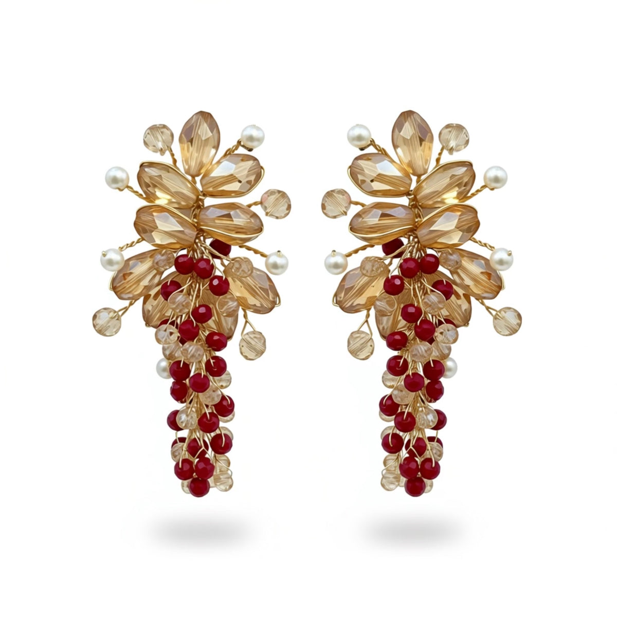 MATERIAL:Premium Quality Wire COLOR:Gold METAL FINISH / COLOR:Gold (Non-Tarnish Coated Wire) STONE / BEAD COLOR: Champagne/Ruby CRAFT STYLE:100% Handmade WEIGHT:Lightweight & Comfortable to Wear PACKAGING:Delivered in White Eco-Friendly Packaging