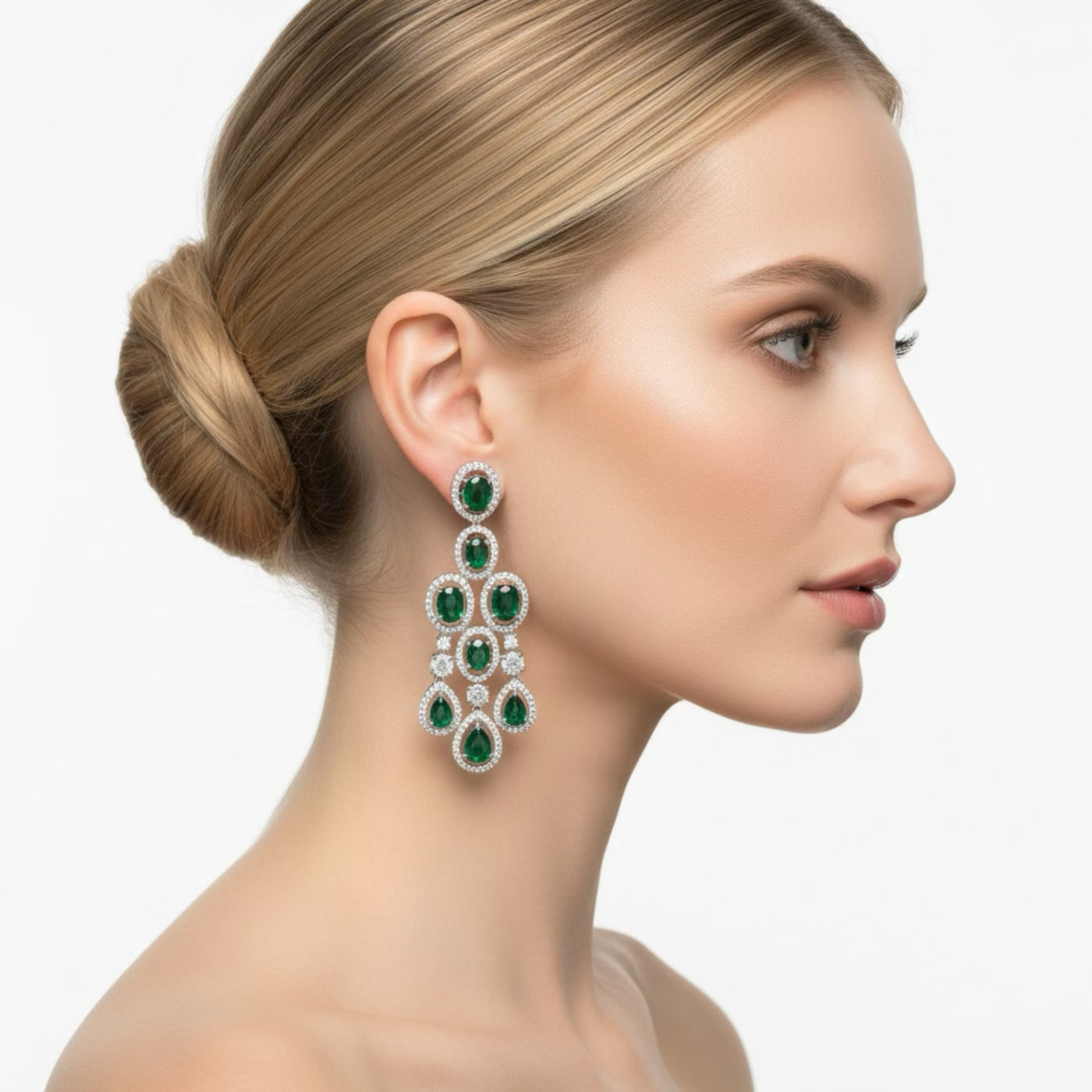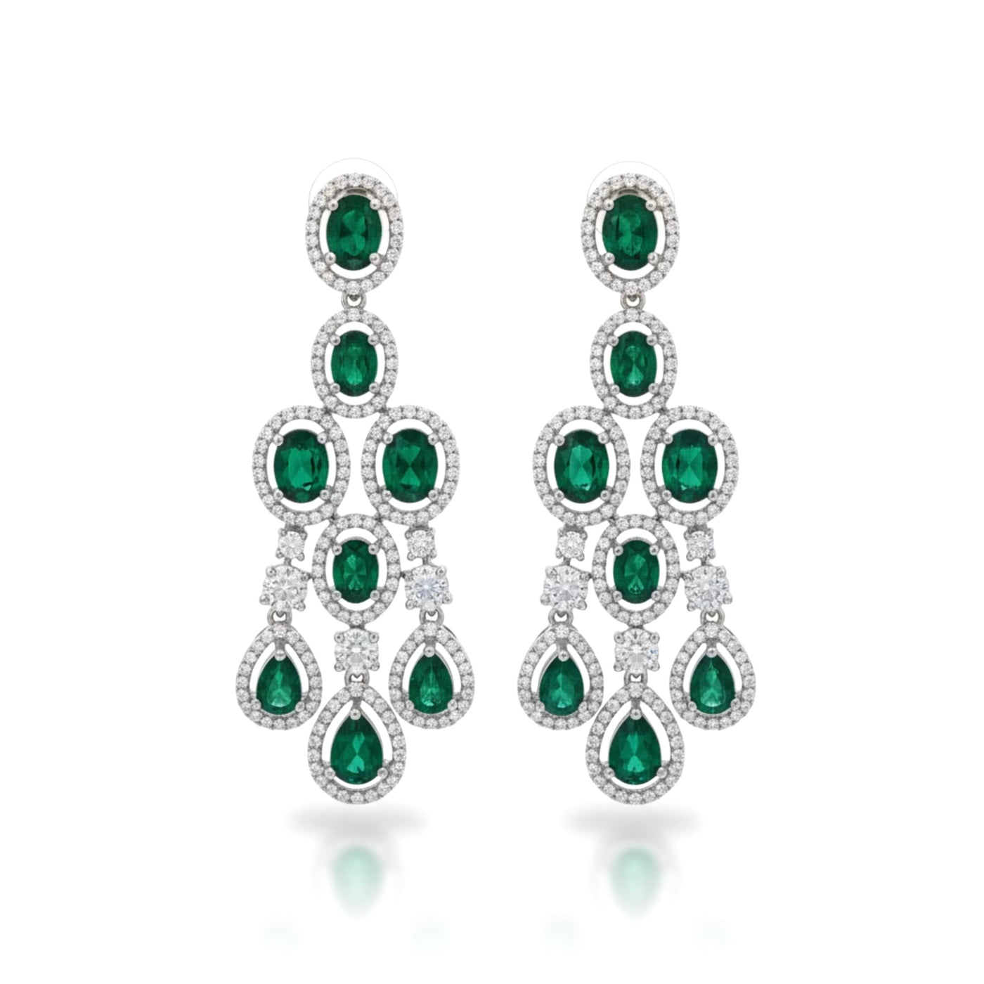 COLOR: Silver METAL FINISH / COLOR: Rhodium Plated (Silver Tone) STONE COLOR: Emerald PACKAGING: Delivered in eco-friendly packaging