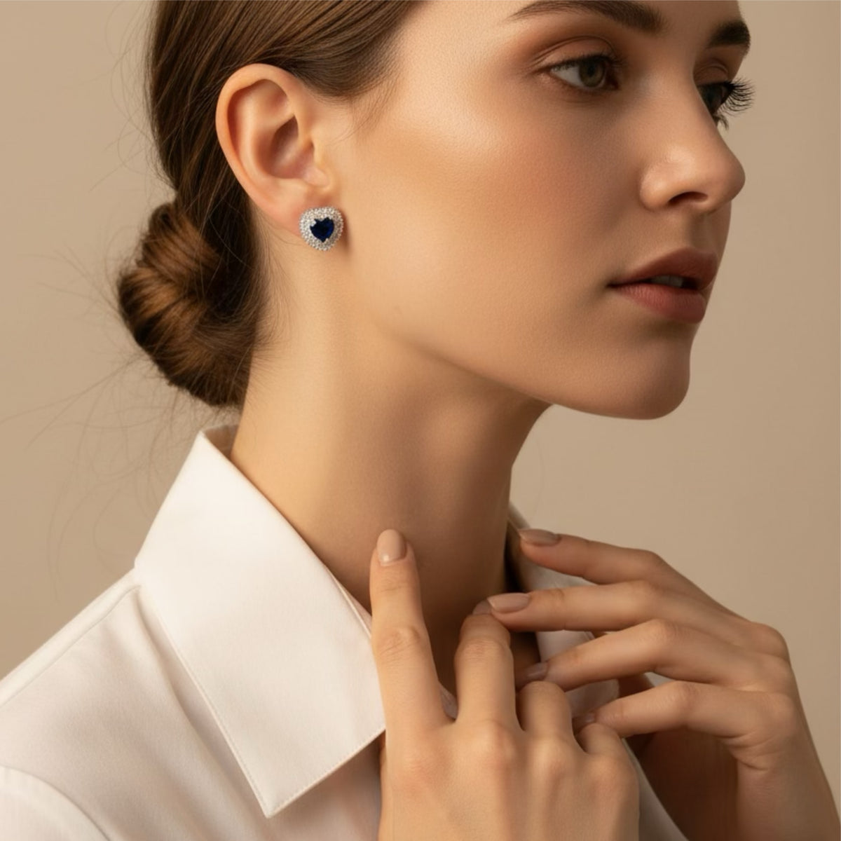 COLOR: Silver METAL FINISH / COLOR: Rhodium Plated (Silver Tone) STONE COLOR: Sapphire PACKAGING: Delivered in eco-friendly packaging