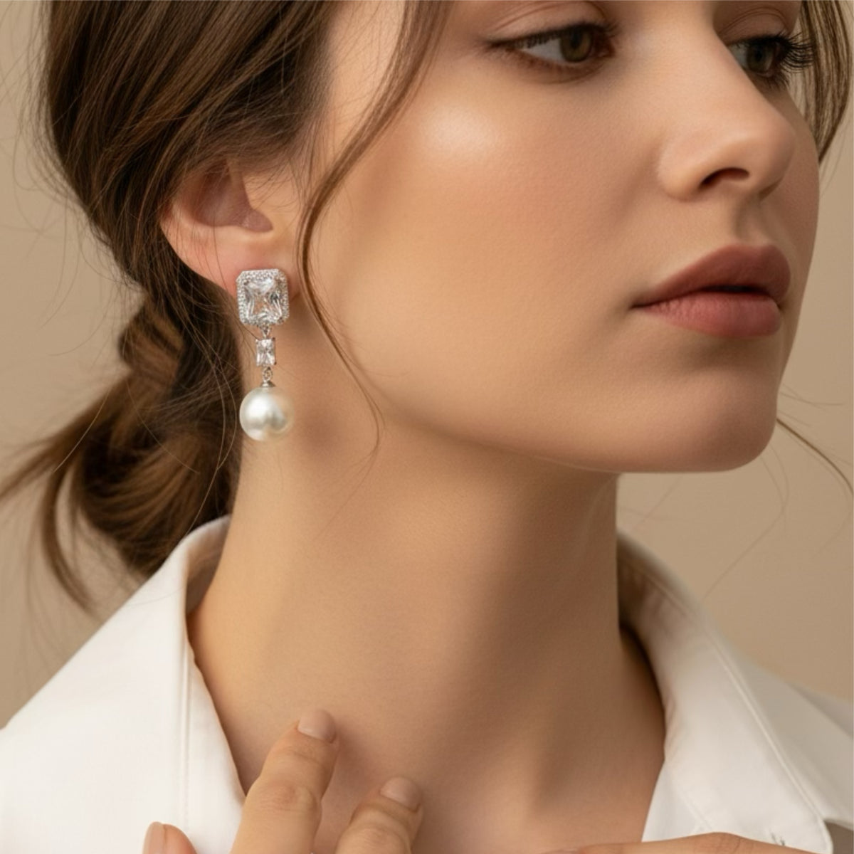 COLOR: Silver METAL FINISH / COLOR: Rhodium Plated (Silver Tone) STONE COLOR: Clear/Pearl PACKAGING: Delivered in eco-friendly packaging