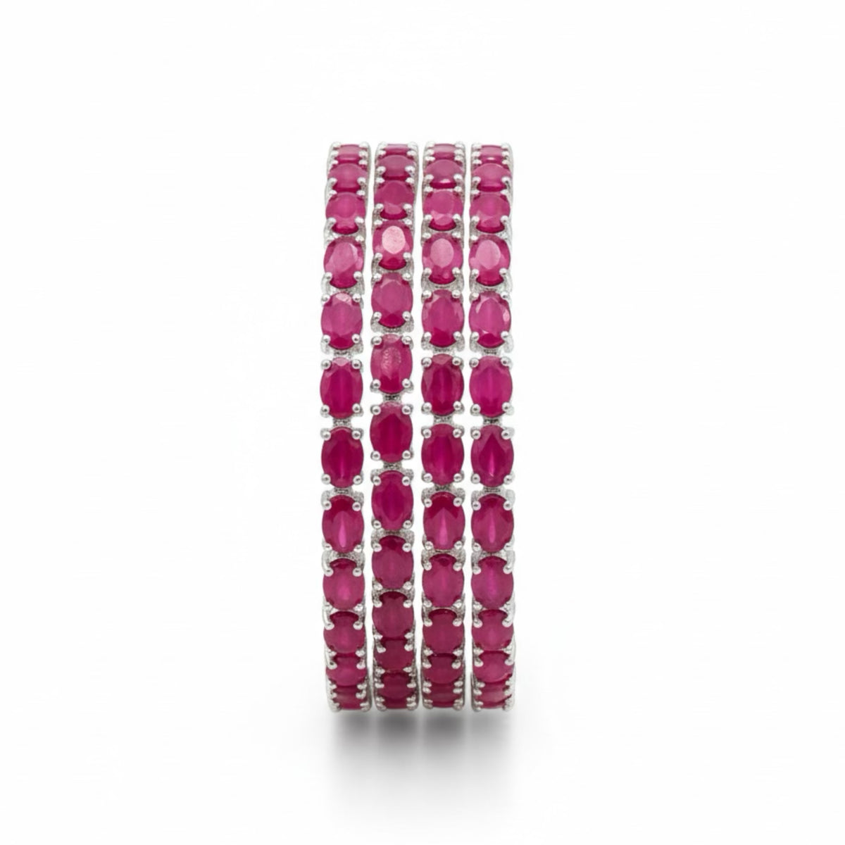 COLOR: Silver METAL FINISH / COLOR: Rhodium Plated (Silver Tone) STONE COLOR: Ruby PACKAGING: Delivered in eco-friendly packaging