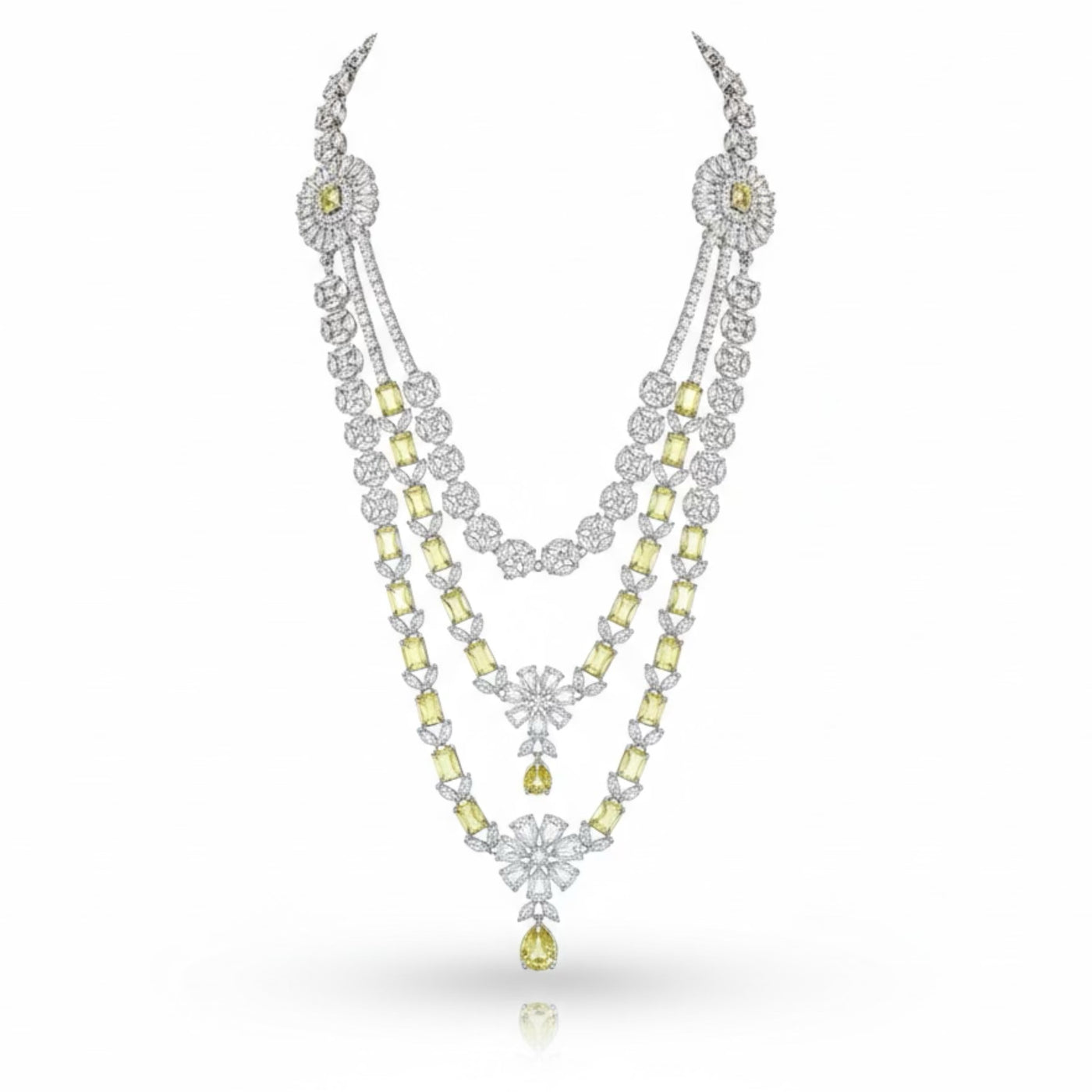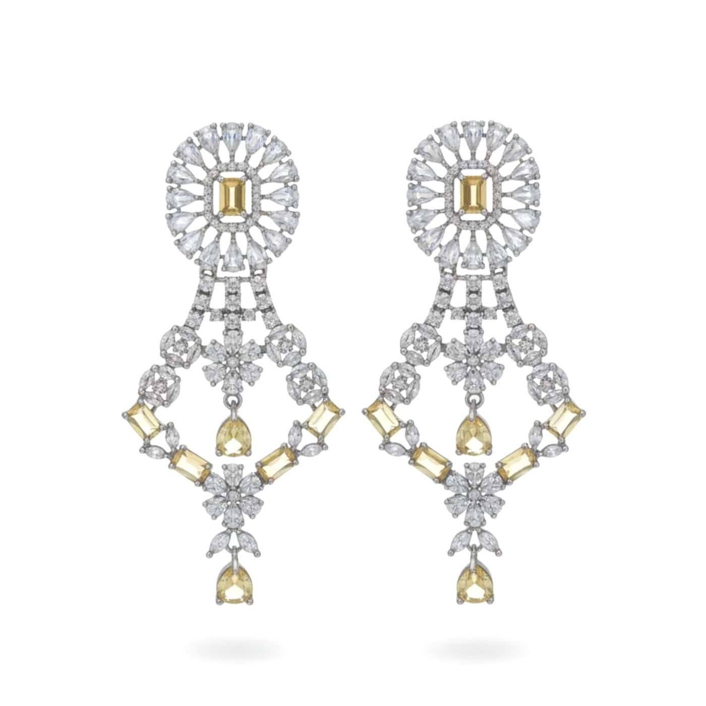 FINISH: High-Polish Rhodium Plated STONES: Brilliant-Cut Diamond-Like Stones with Elegant Accents STONE COLOR: Yellow Topaz CRAFT: Precision Crafted Luxury Design WEIGHT: Lightweight & Refined Comfort PACKAGING: Delivered in White Eco-Friendly Packaging