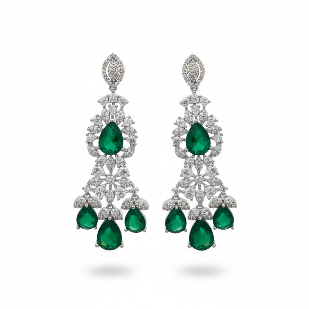 FINISH: High-Polish Rhodium Plated STONES: Brilliant-Cut Diamond-Like Stones with Elegant Accents STONE COLOR: Emerald CRAFT: Precision Crafted Luxury Design WEIGHT: Lightweight & Refined Comfort PACKAGING: Delivered in White Eco-Friendly Packaging