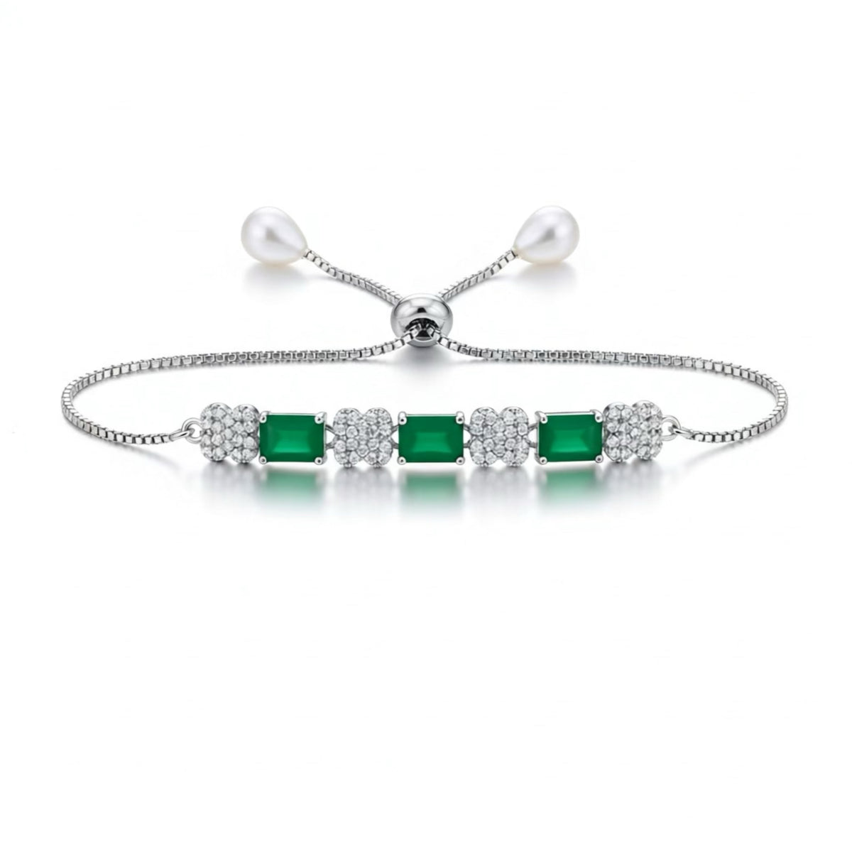 COLOR: Silver METAL FINISH / COLOR: Rhodium Plated (Silver Tone) STONE COLOR: Emerald PACKAGING: Delivered in eco-friendly packaging