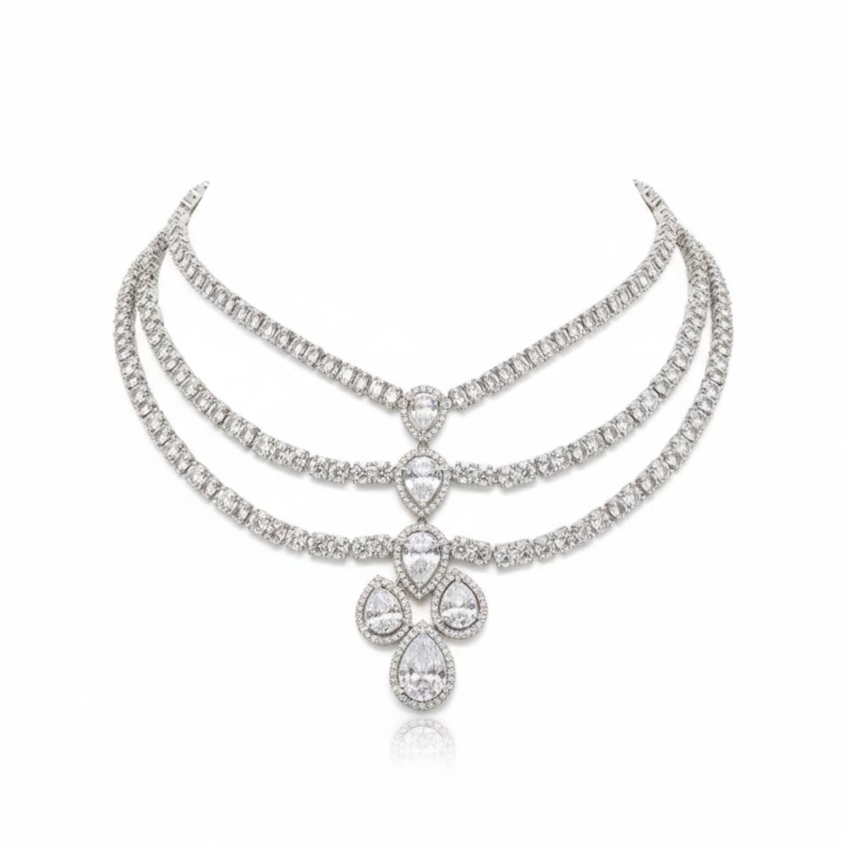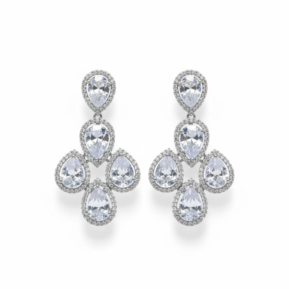 FINISH: High-Polish Rhodium Plated STONES: Brilliant-Cut Diamond-Like Stones with Elegant Accents STONE COLOR: Clear/White CRAFT: Precision Crafted Luxury Design WEIGHT: Lightweight & Refined Comfort PACKAGING: Delivered in White Eco-Friendly Packaging