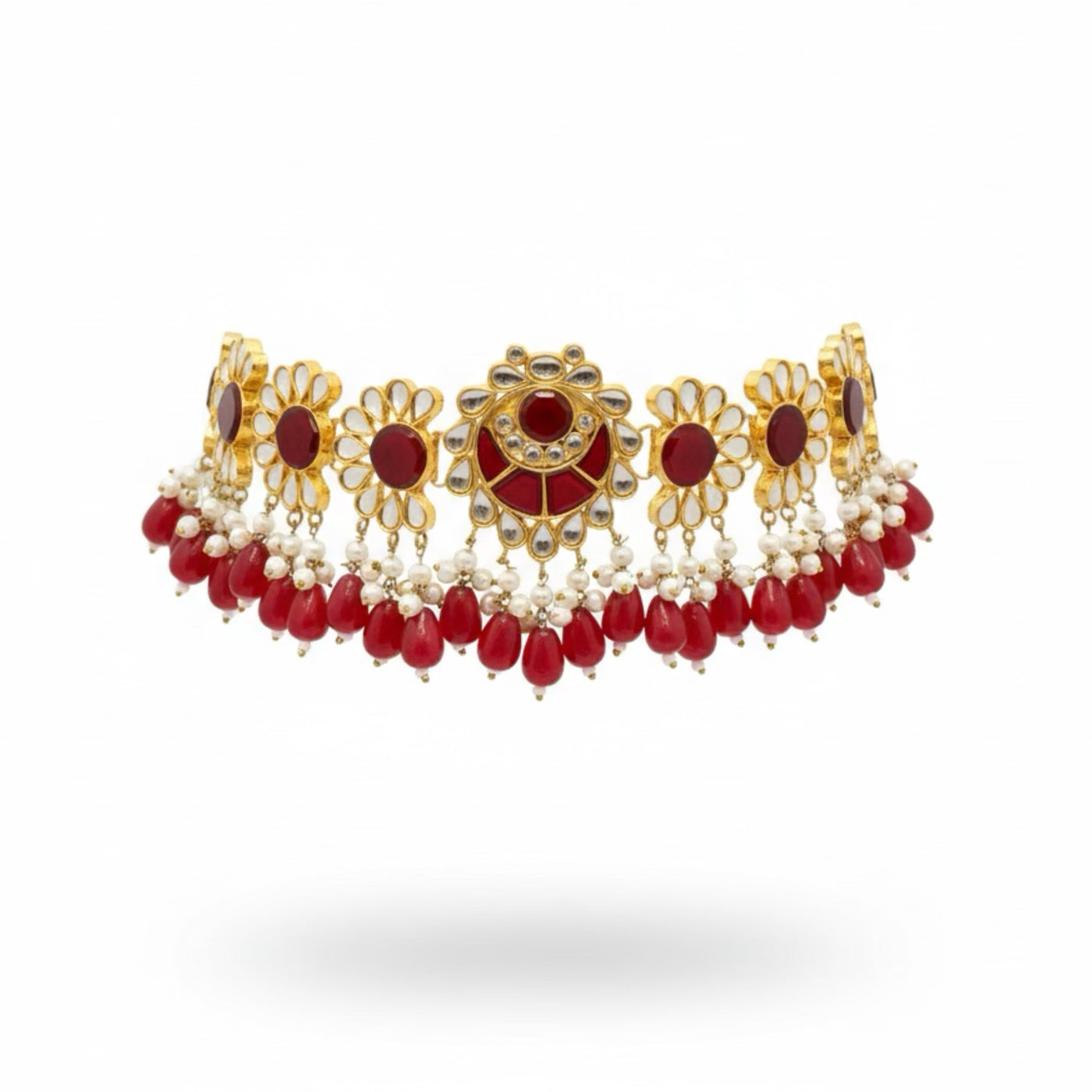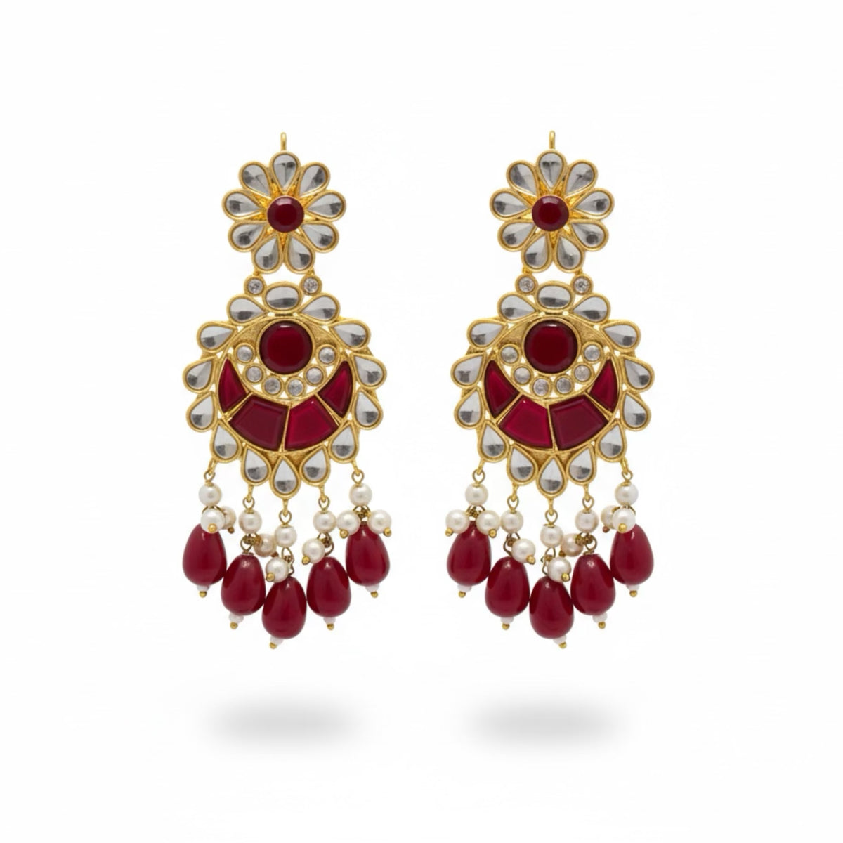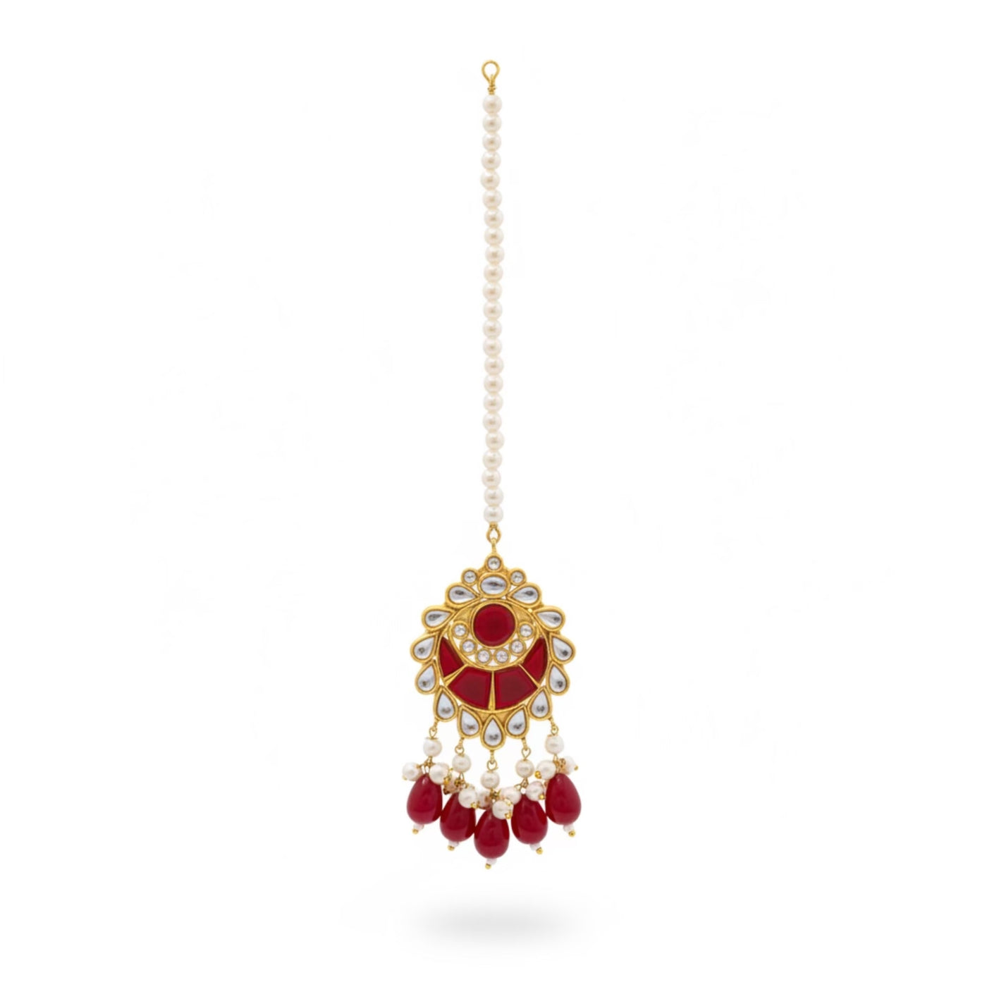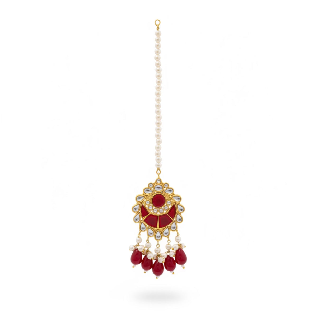 COLOR: Gold METAL FINISH / COLOR: Premium Gold Plated Finish STONE TYPE: Traditional Kundan Stones STONE COLOR: Ruby CRAFT STYLE: Handcrafted Traditional Kundan Artistry WEIGHT: Lightweight & Comfortable for Long Wear PACKAGING: Delivered in Elegant White Eco-Friendly Packaging