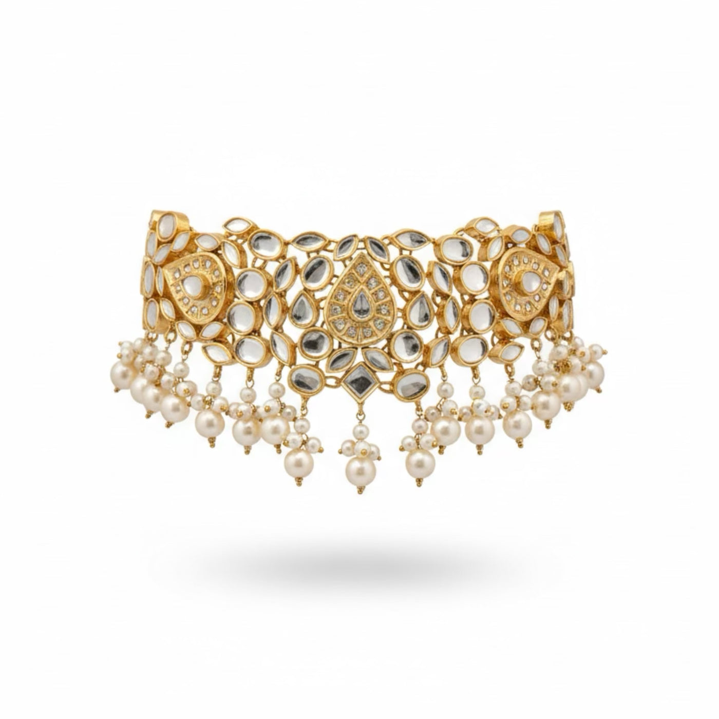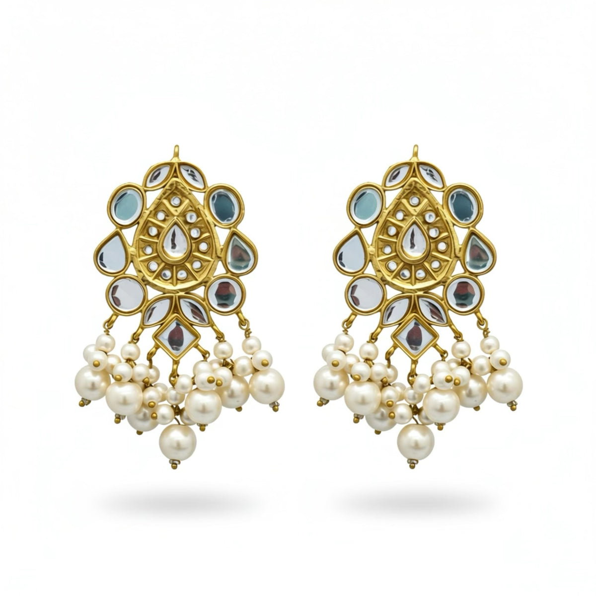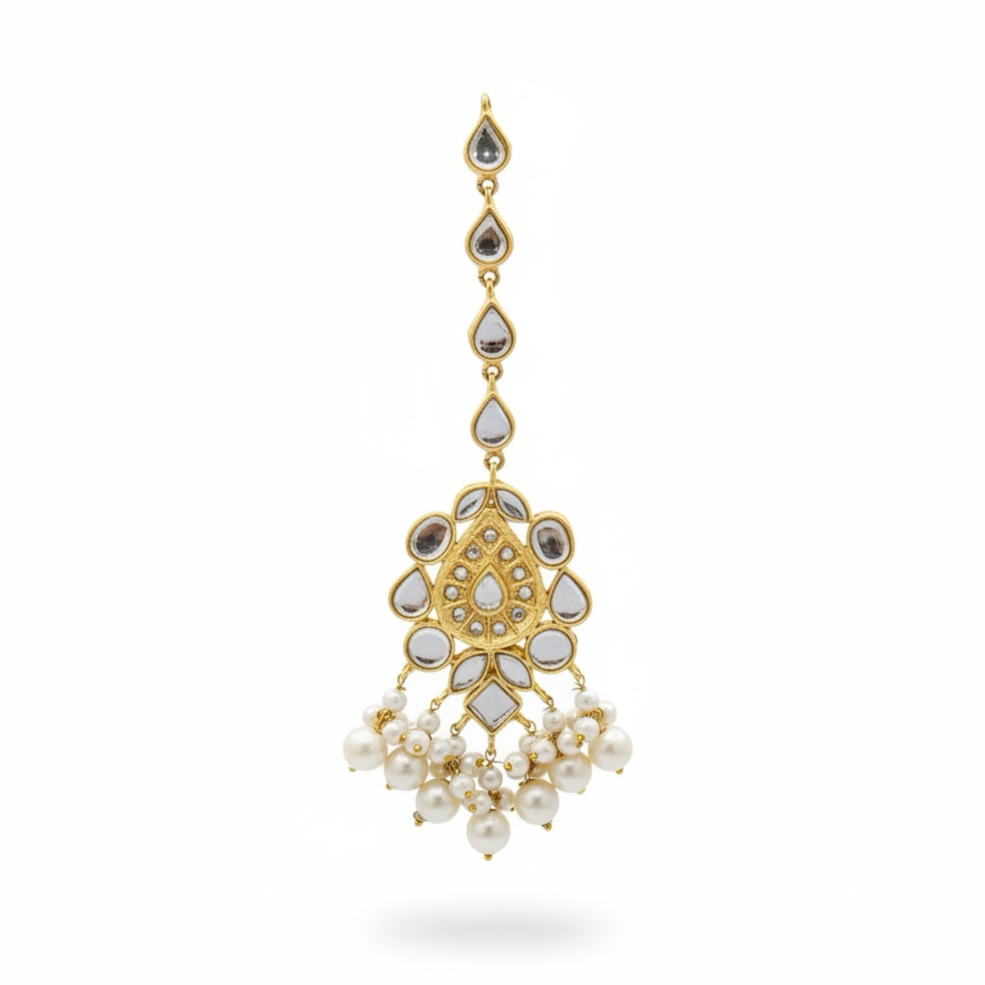 COLOR: Gold METAL FINISH / COLOR: Premium Gold Plated Finish STONE TYPE: Traditional Kundan Stones STONE COLOR: Pearl CRAFT STYLE: Handcrafted Traditional Kundan Artistry WEIGHT: Lightweight & Comfortable for Long Wear PACKAGING: Delivered in Elegant White Eco-Friendly Packaging