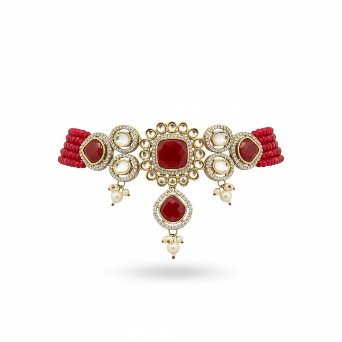 COLOR: Gold METAL FINISH / COLOR: Premium Gold Plated Finish STONE TYPE: Traditional Kundan Stones STONE COLOR: Ruby CRAFT STYLE: Handcrafted Traditional Kundan Artistry WEIGHT: Lightweight & Comfortable for Long Wear PACKAGING: Delivered in Elegant White Eco-Friendly Packaging