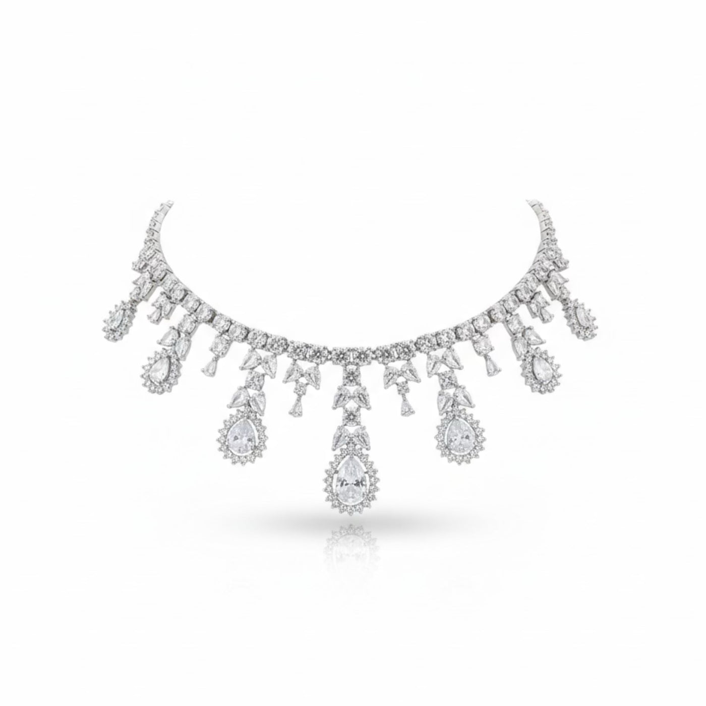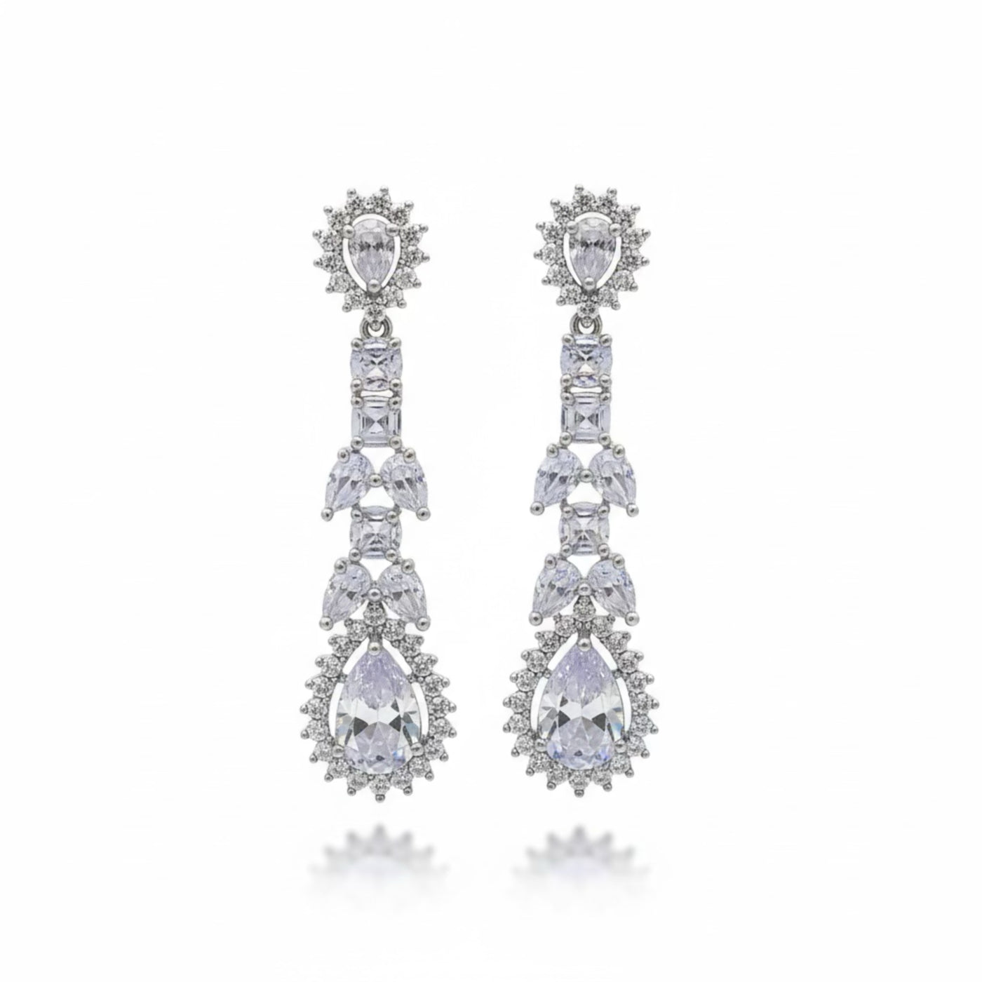 FINISH: High-Polish Rhodium Plated STONES: Brilliant-Cut Diamond-Like Stones with Elegant Accents STONE COLOR: Clear/White CRAFT: Precision Crafted Luxury Design WEIGHT: Lightweight & Refined Comfort PACKAGING: Delivered in White Eco-Friendly Packaging