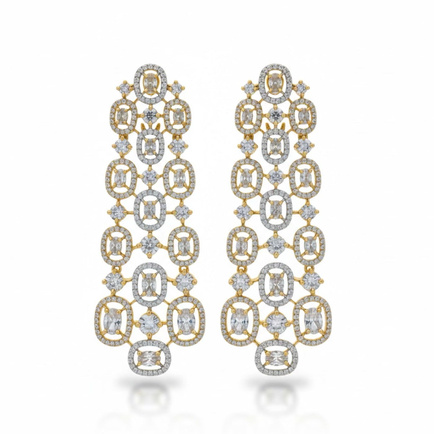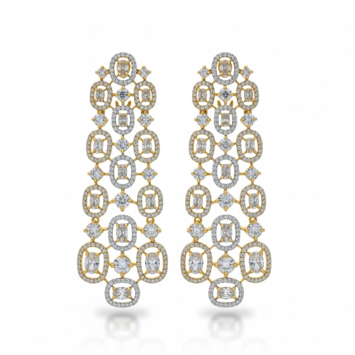 FINISH: Gold Plated STONES: Brilliant-Cut Diamond-Like Stones with Elegant Accents STONE COLOR: Clear/White CRAFT: Precision Crafted Luxury Design WEIGHT: Lightweight & Refined Comfort PACKAGING: Delivered in White Eco-Friendly Packaging